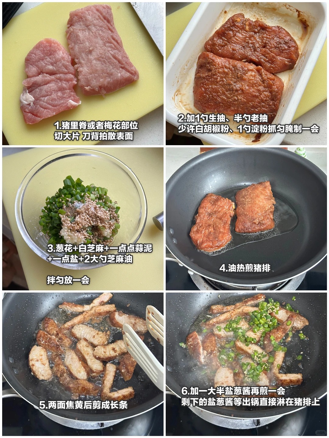 对了,如果你也想试试这个做法,记得猪排不要切太厚,拍松很重要,还有就是葱油酱一定要多做一点,因为真的太好吃了会停不下来。煎的时候火不要太大,慢慢煎才能外焦里嫩。